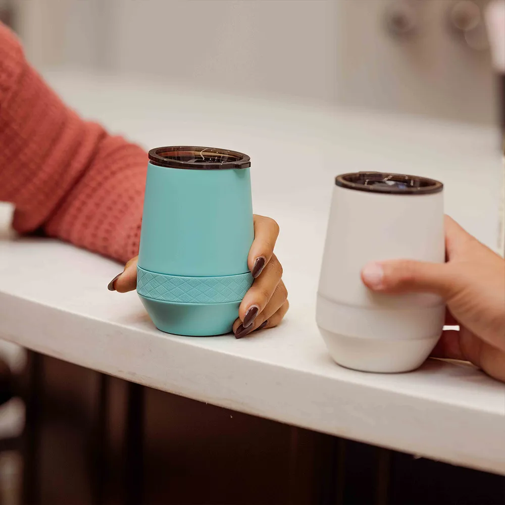 When you’re ready to pour up your favorite chardonnay or party with a sangria, the Elemental Recess Stemless tumbler is primed to house your favorite wines. The triple-wall insulated stainless steel will keep your favorite sips ice cold for 12 hours or hot up to 6. Recap your favorite crazy story without your drink flying out of your hand with the textured grip band. The non-slip bottom will keep your tumbler upright and the Tritan slider lid will prevent any unnecessary spills.